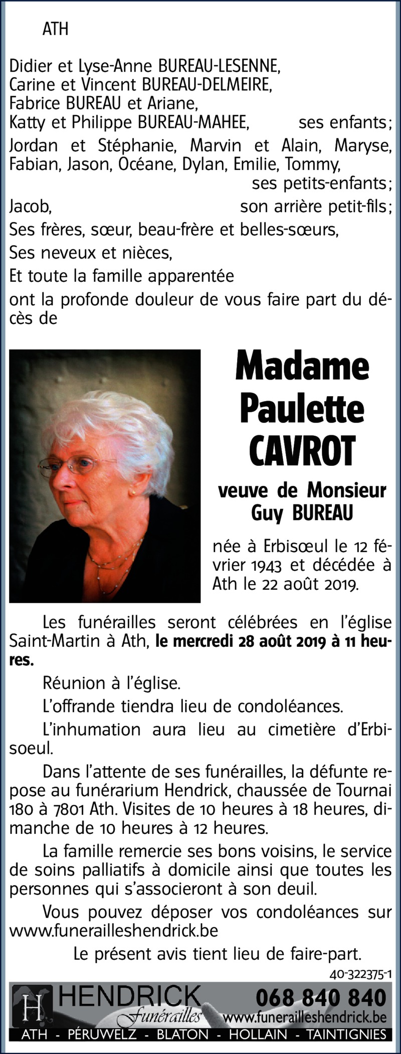 Veuve de Guy BUREAU
