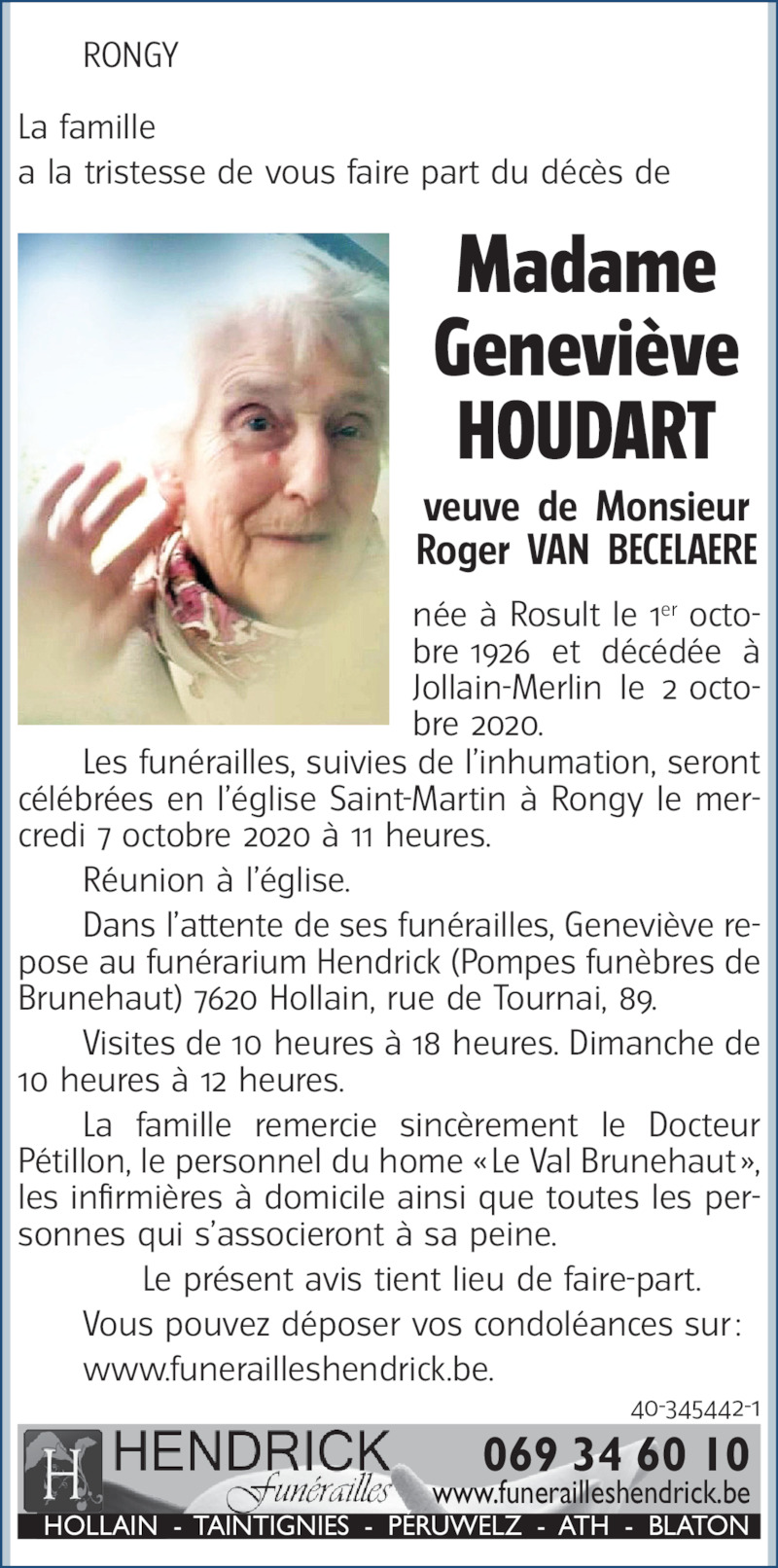 Veuve de Roger VAN BECELAERE