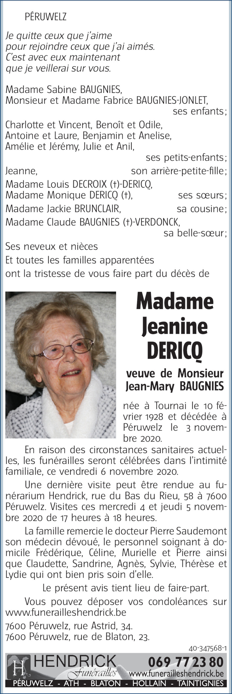 Veuve de Jean Mary BAUGNIES