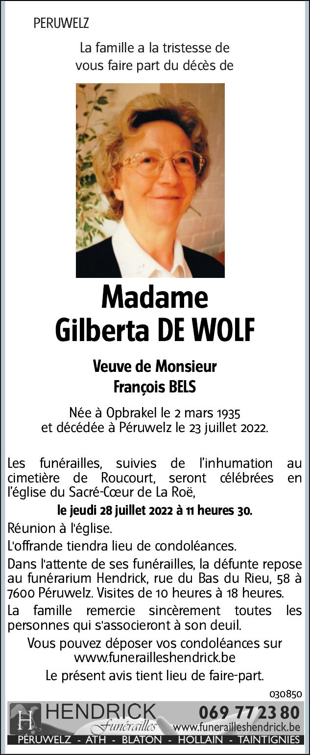 Mme DE WOLF Gilberta